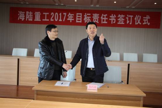 2月6日,新春伊始,為實(shí)現(xiàn)公司的持續(xù)快速發(fā)展,順利完成年度經(jīng)營(yíng)計(jì)劃,貫徹落實(shí)公司績(jī)效管理政策, 2017《績(jī)效目標(biāo)責(zé)任書》的簽訂儀式。責(zé)任書明確了公司事業(yè)部和責(zé)任主體的權(quán)利與義務(wù),并對(duì)各事業(yè)部經(jīng)營(yíng)與管理任務(wù)指標(biāo)進(jìn)一步量化了考核標(biāo)準(zhǔn),在公司原有考核獎(jiǎng)勵(lì)機(jī)制、績(jī)效考評(píng)等基礎(chǔ)上進(jìn)行了優(yōu)化與改進(jìn)。會(huì)上董事長(zhǎng)徐元生做了重要講話,徐總指出一年之際在于春,2017年各部門目標(biāo)責(zé)任書的簽訂,對(duì)于公司的未來發(fā)展,意義非凡。目標(biāo)責(zé)任書的簽訂,只是一個(gè)起點(diǎn),這個(gè)起點(diǎn)是理性的,務(wù)實(shí)的,也是富有激情的。最后,徐總希望簽約的各位領(lǐng)導(dǎo)干部壯志在我心,揚(yáng)鞭在腳下,快速地行動(dòng)起來!用樂觀自信的態(tài)度,拿出全力以赴的精神,充分展現(xiàn)自己的才能,注重上下團(tuán)結(jié)協(xié)作,發(fā)揮自己聰明才智,創(chuàng)造出海陸重工2017年新的輝煌。