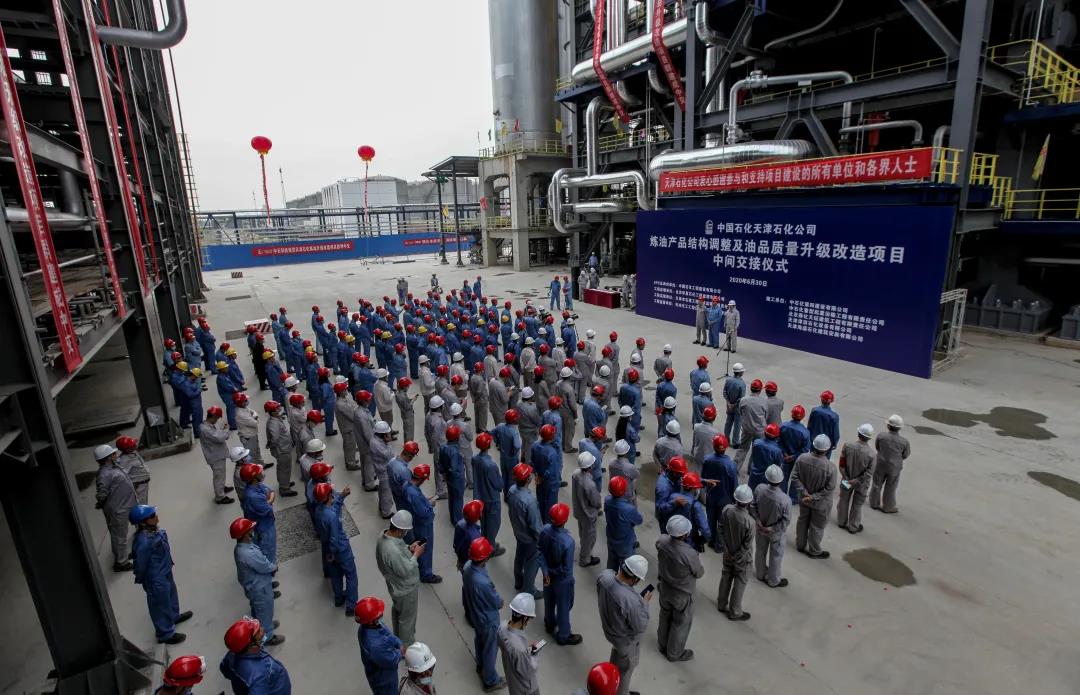 6月30日上午9點(diǎn)16分,天津煉油產(chǎn)品結(jié)構(gòu)調(diào)整及油品質(zhì)量升級(jí)改造項(xiàng)目的中間交接儀式天津石化基地280萬(wàn)噸/年催化裂化裝置區(qū)域隆重舉行。